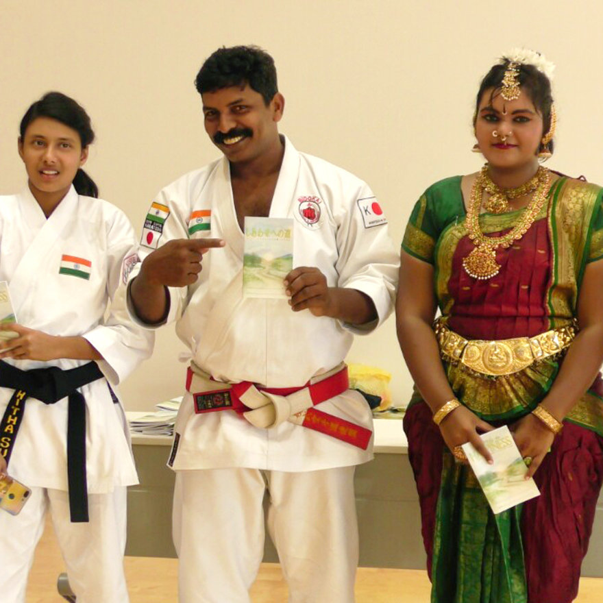 El equipo de El Camino a la Felicidad de Japón le proporcionó folletos a los jugadores y a los sensei (maestros de artes marciales) de todo el mundo que estaban participando. También proporcionaron folletos a los padres y al público en general así como a la comunidad de Okinawa, todos con el propósito de ayudarles en su búsqueda de un verdadero budo de karate.
