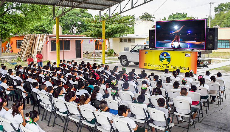 ¿Cómo llegas fácilmente a los jóvenes de todo el estado mexicano? Esa pregunta fue respondida cuando la filial de El Camino a la Felicidad del noreste del estado mexicano de Tamaulipas puso una gran pantalla de TV y altavoces en un camión con la pancarta de El Camino a la Felicidad y fue de escuela a escuela y de comunidad a comunidad con los 21 preceptos literalmente a cuestas.
