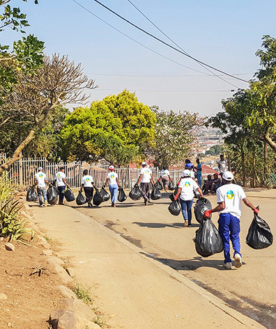 Las muchas actividades de Sudáfrica con El Camino a la Felicidad (TWTH) incluyen la Campaña de Cuidar el Medio Ambiente en la ciudad oceánica de Durban, basada en el precepto 12 de El Camino a la Felicidad, Protege y Mejora Tu Medio Ambiente. Más allá de la playas están los vecindarios más pobres, a veces un poco más que ciudades improvisadas. Para empezar, el equipo líder de Durban los visitó con El Camino a la Felicidad en mano, distribuyeron los libritos y entregaron entrenamiento en el precepto 12.