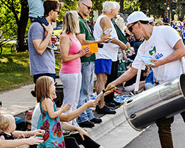Una escuela de samba trae alegría y El Camino a la Felicidad a bailarines y a su audiencia.
